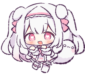 | miffy's mascots include her tail ghost attached to her and her tiny ghost friend !! both r currently unnamed for now :3 |