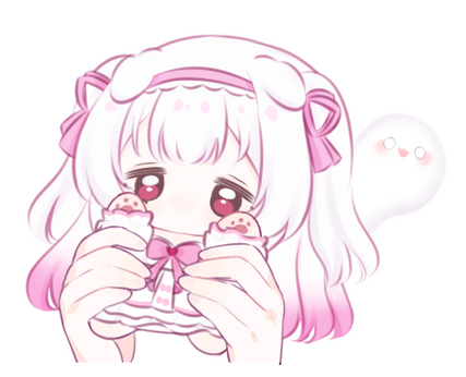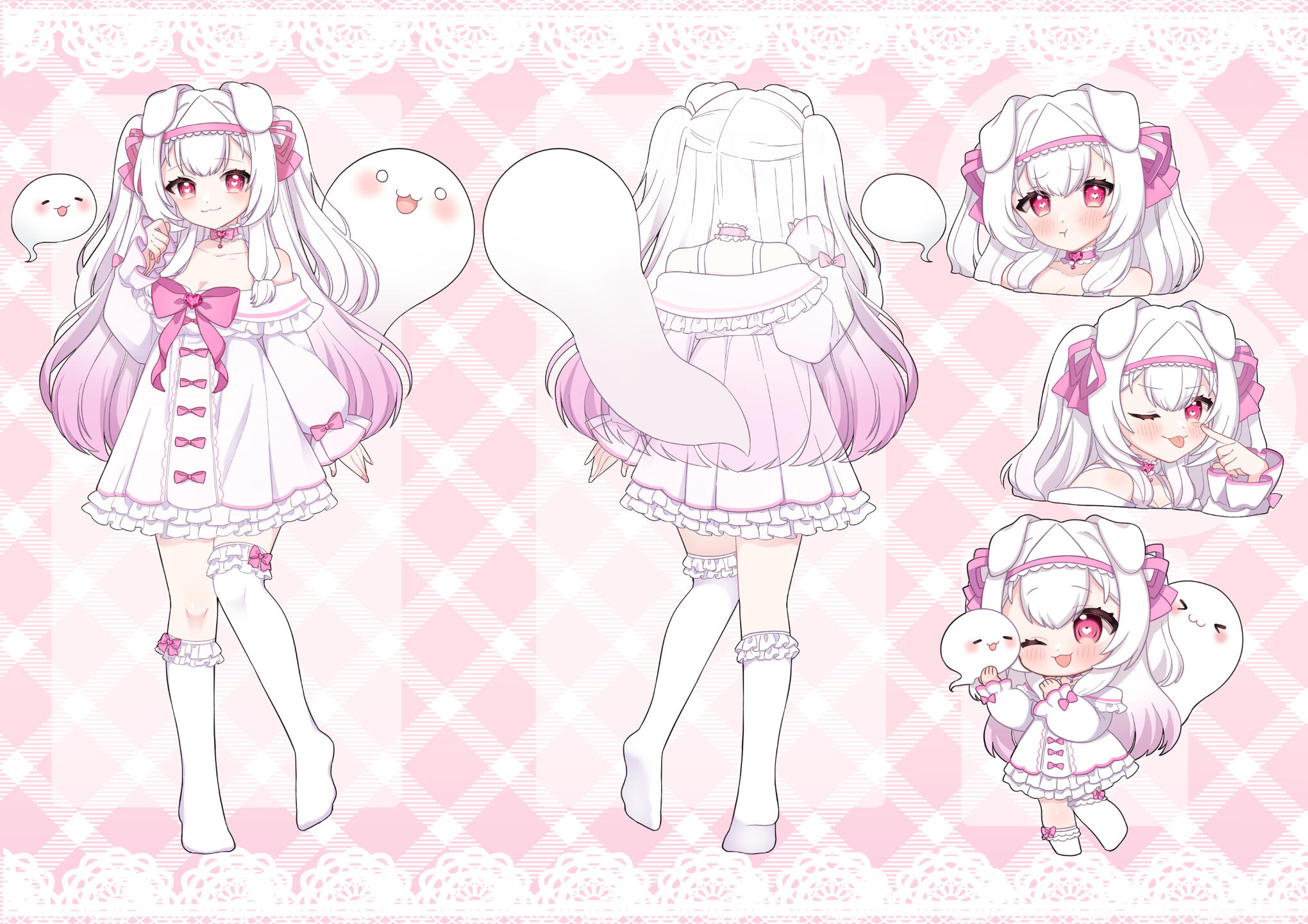 | miffy's mascots include her tail ghost attached to her and her tiny ghost friend !! both r currently unnamed for now :3 |
